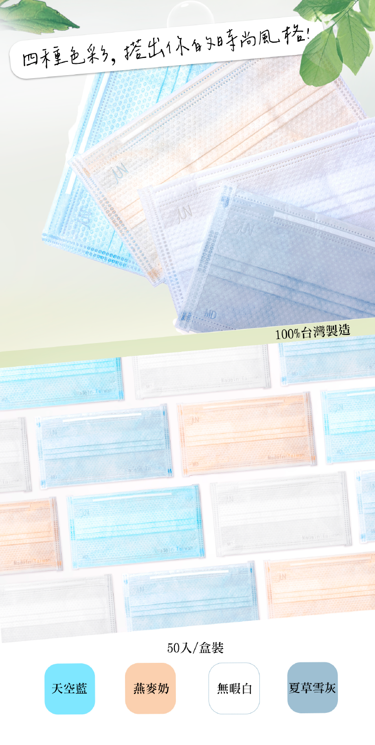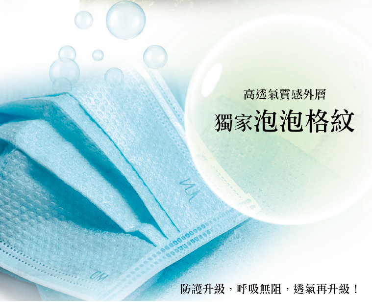 泡泡紋平面醫療口罩- 天空藍(50入/盒)